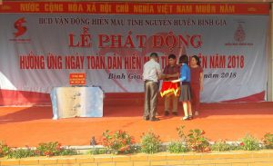 Đ/c Hoàng Cẩm Bình, Chủ tịch Hội Chữ thập đỏ Bình Gia trao Giấy khen cho các tập thể, cá nhân tham gia hiến máu tình nguyện ((ảnh tư liệu)